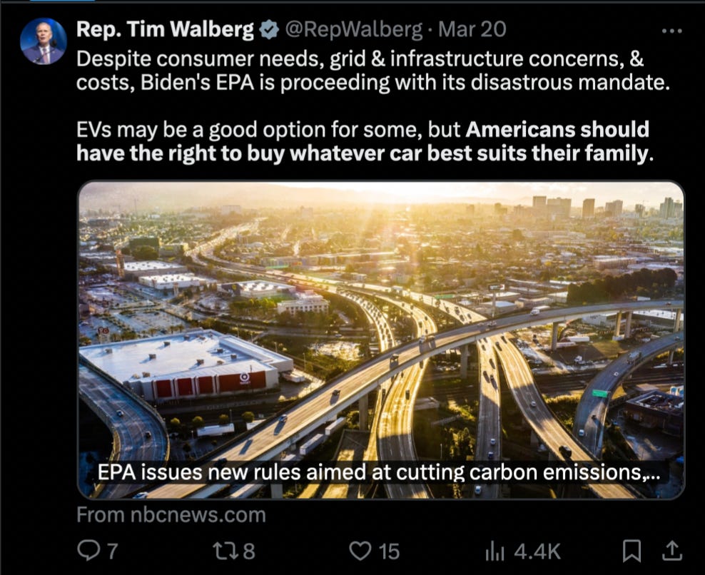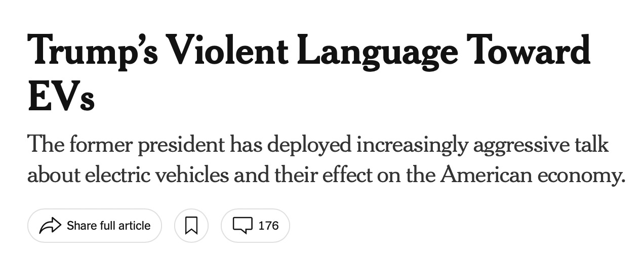 So the EV political discourse isn’t likely to die down soon, which is generally bad news for public understanding. Because political actors aren’t primarily motivated by helping you understand reality; they’re primarily motivated by inflaming or exciting you into making a certain political decision.