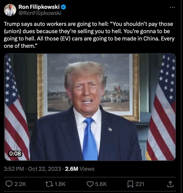 Trump himself has said that a second Biden term would result in a “bloodbath” for the U.S. auto industry because Biden will allow Chinese EVs to flood the market. He recently said that EVs in the U.S. are “all going to be made in China.”