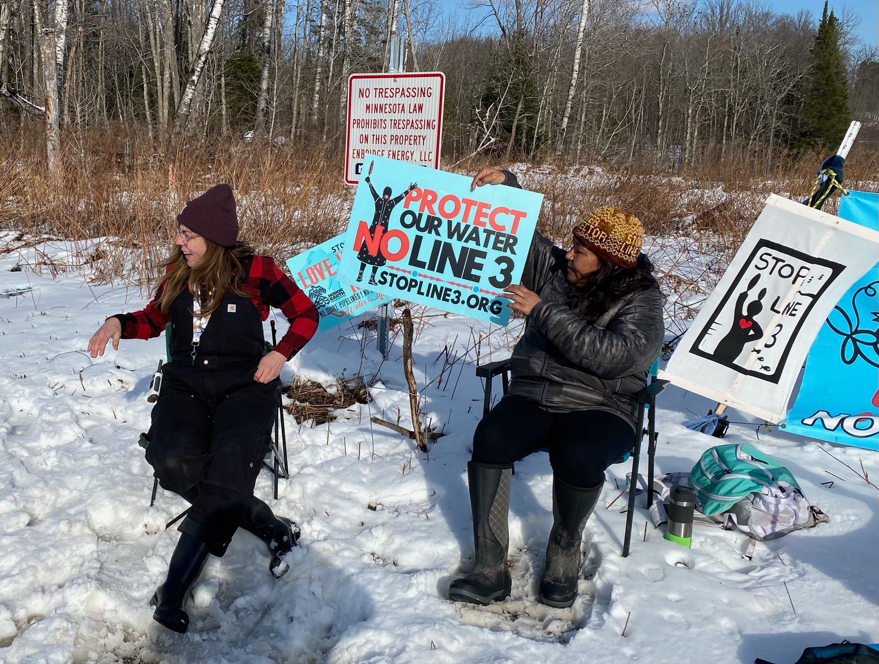 NORTH OF PALISADE, Minnesota—Tania Aubid has not eaten solid food for 26 days, but she still has energy to yell at the cops. “No jurisdiction!!” she bellowed at two passing sheriff vehicles on Thursday from a blue beach chair on the sid…