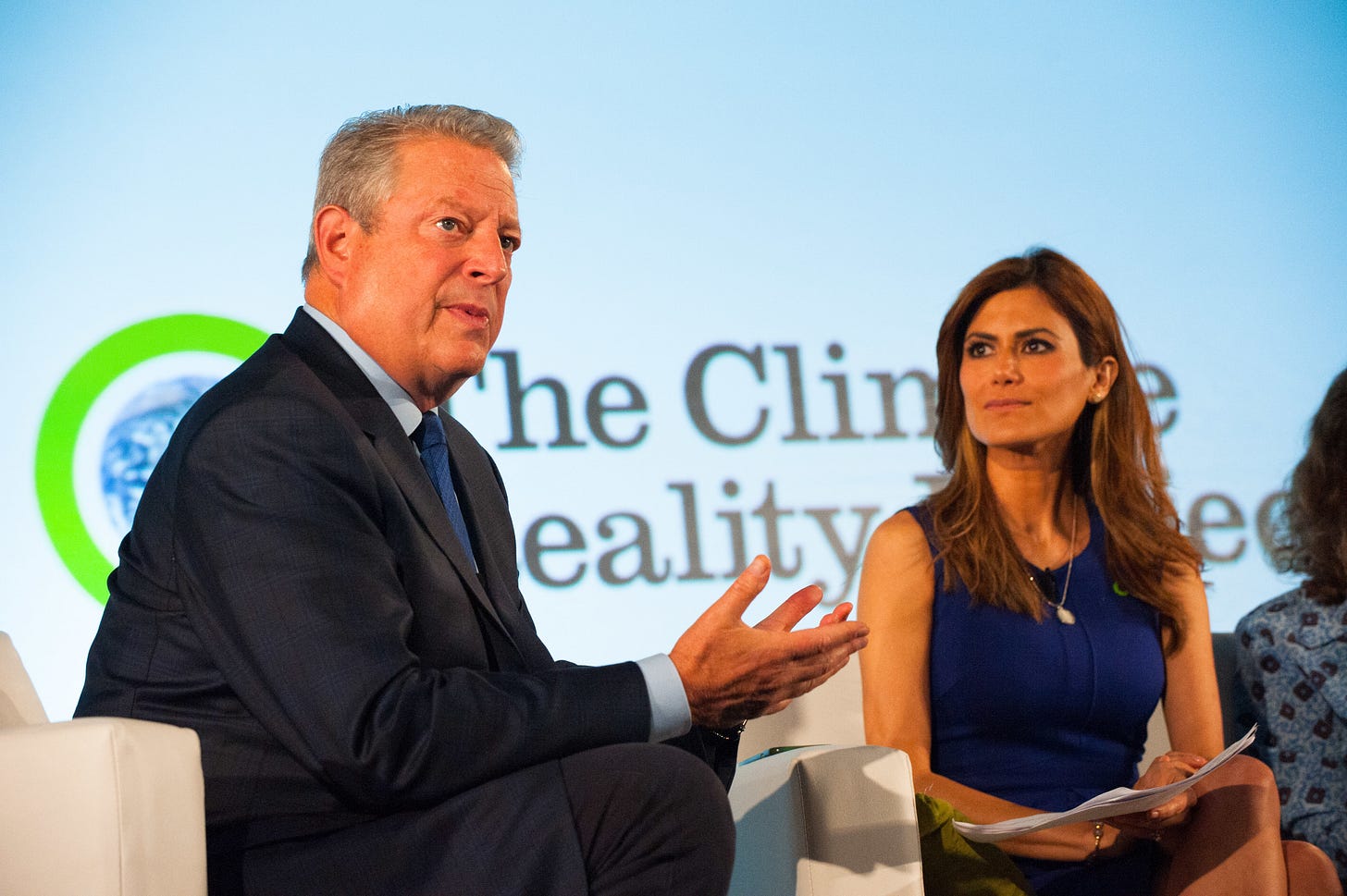 Al Gore speaks to Telemundo’s Vanessa Hauc in 2015. Photo by Michele Eve Sandberg/Corbis via Getty Images.