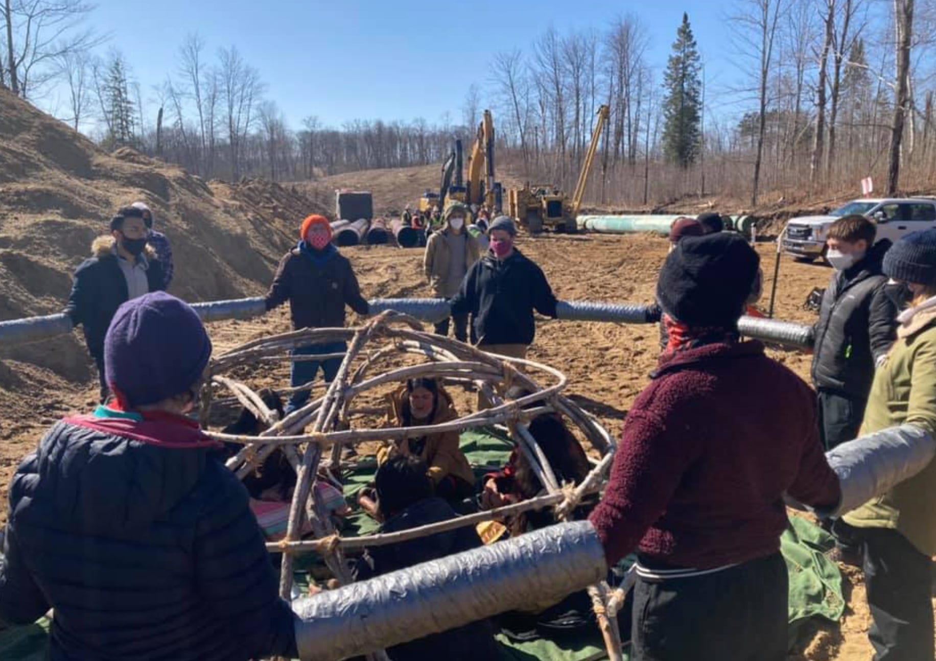 A waaginogaaning is the traditional structure of Anishinaabe peoples. On Thursday, seven Anishinaabe water protectors carried one into a construction site for Enbridge’s Line 3 tar sands pipeline, and sat inside to pray.