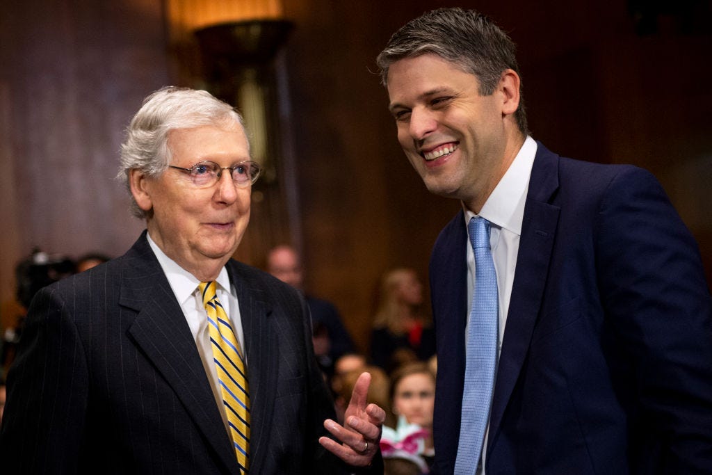 Senate looks to confirm climate idiot during pandemicTrump's nominee to the D.C. Circuit claims he's not allowed to accept climate science. He is. Emily AtkinMay 04, 2020∙ Paid114Share(Mitch McConnell talks with Justin Reed Walker before a hearing on Walker’s nomination for U.S. district judge for the Western District of Kentucky on July 31, 2019. Photo by Caroline Brehman/CQ Roll Call.)This post is for paid subscribersSubscribeAlready a paid subscriber? Sign inPreviousNext