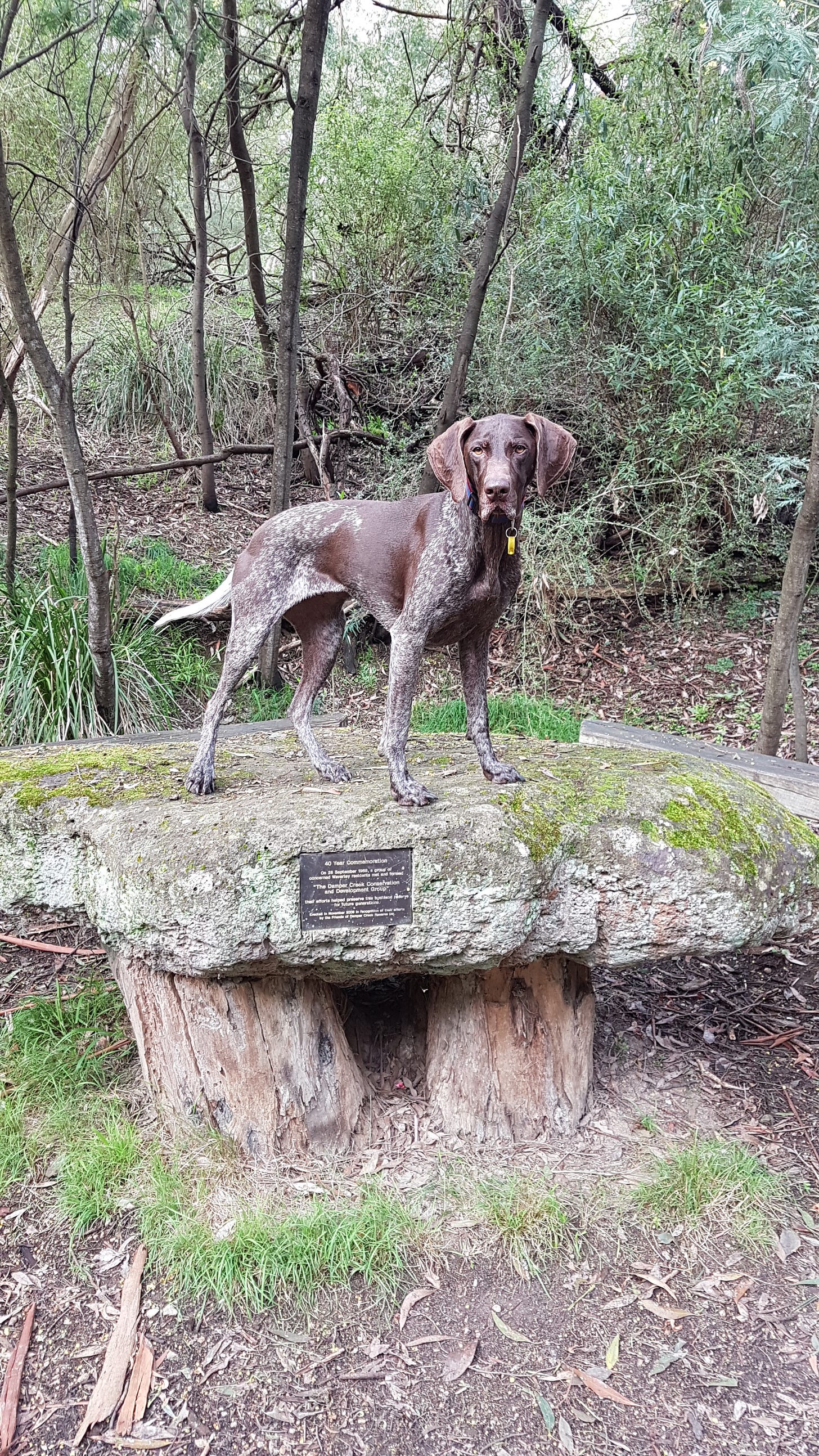 First up is Issey, and she traveled a long way to be here!! This German Shorthaired Pointer girl lives with reader David in Melbourne, Australia. She's worried about what climate change will do to where she lives and walks—and if it will increase the price of kibble.