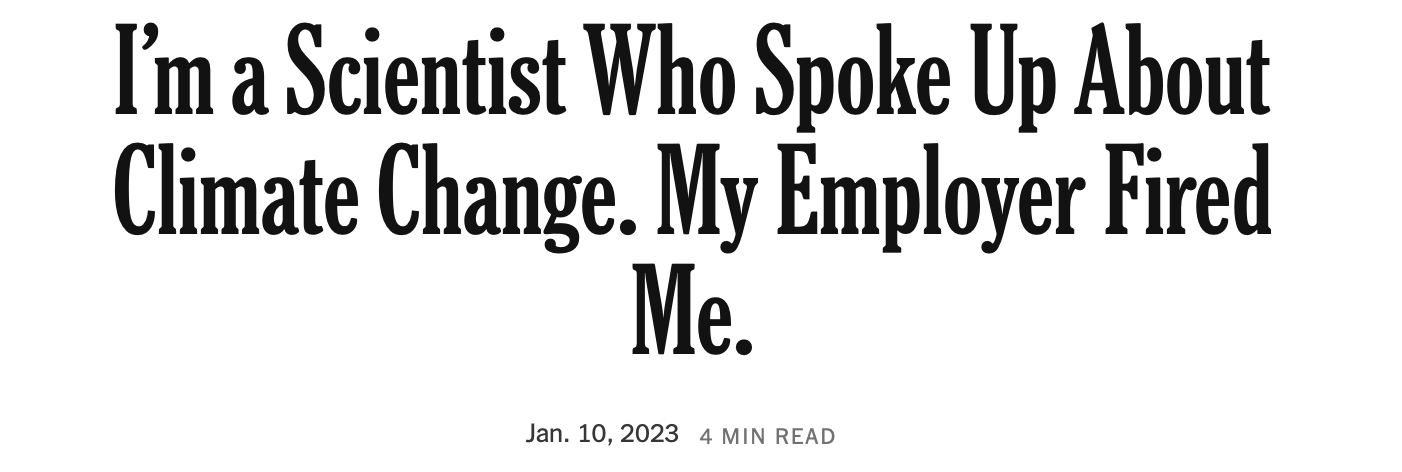 The post raises important questions. How do we measure the value of a scientist and her research? Is the loss of a scientist’s job worse than the interruption of a panel, or the loss of objectivity on taxpayer time? When the planet is at risk of becoming uninhabitable, is it time to reevaluate our norms?